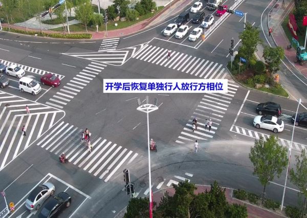 2.調(diào)整部分學(xué)校周邊路口的放行方式,由單獨行人相位調(diào)整為行人跟隨機動車通行,減少綠損,從而提高路口、路段整體通行效率。