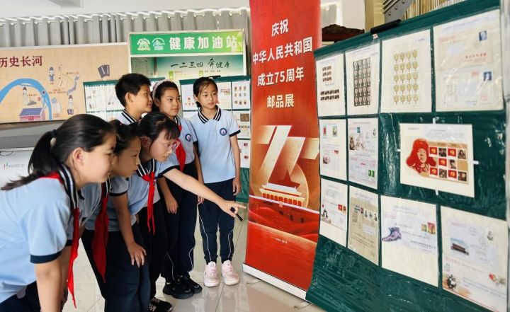 為慶祝中華人民共和國75周年,謳歌黨的豐功偉績,豐富校園文化生活,向廣大同學(xué)普及郵票知識,弘揚(yáng)中華民族傳統(tǒng)文化。近日,威海市北竹島小學(xué)開展“方寸伴我行,祖國在心中”紅色主題郵展活動。