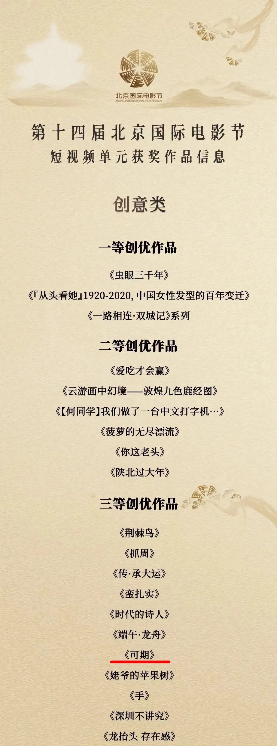 第十四屆北京國(guó)際電影節(jié)短視頻單元由中國(guó)傳媒大學(xué),中國(guó)新聞社、中國(guó)社會(huì)報(bào)社、中國(guó)移動(dòng)咪咕公司聯(lián)合主辦。據(jù)主辦方介紹,本次電影節(jié)共收到來自中國(guó)、美國(guó)、法國(guó)、澳大利亞、土耳其、伊朗、泰國(guó)、印度尼西亞以及中國(guó)香港、中國(guó)澳門、中國(guó)臺(tái)灣等三十多個(gè)國(guó)家和地區(qū)的作品5185部。征片數(shù)量與質(zhì)量都再創(chuàng)新高,創(chuàng)作主體更加多元、手法更加前沿、內(nèi)容品質(zhì)提升明顯。經(jīng)選片人初評(píng),專家評(píng)委復(fù)評(píng),最終確定各類別、各板塊的創(chuàng)優(yōu)作品名單。